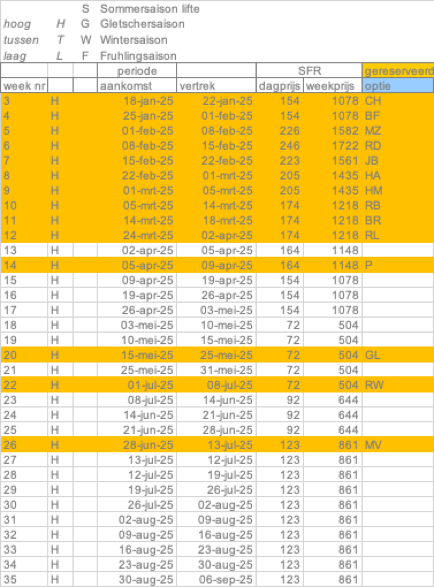 Prijzen exclusief reiniging (Sfr154) , beddegoed (Sfr 27,50/bed)
